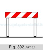 4. La barriera "normale" (fig. II.392) e' colorata a strisce alter- nate oblique bianche e rosse. La larghezza delle strisce rosse deve essere pari a 1,2 volte quella delle strisce bianche. Deve avere un'altezza non inferiore a 20 cm e deve essere posta parallelamente al piano stradale con il bordo inferiore ad altezza non inferiore a 80 cm da terra in posizione tale da renderla visibile anche in presenza di altri mezzi segnaletici di pre-segnalamento.