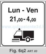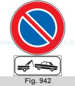 Il pannello integrativo raffigurato viene applicato al segnale DIVIETO DI SOSTA (fig. 942) e indica che se il veicolo viene lasciato in sosta può essere rimosso, cioè portato via dal carro-attrezzi e trasportato al deposito (depositeria) comunale, oppure bloccato con un attrezzo a chiave (ganascia). I veicoli al servizio di persone diversamente abili, munite di apposito contrassegno, non possono essere portati via, né bloccati.
