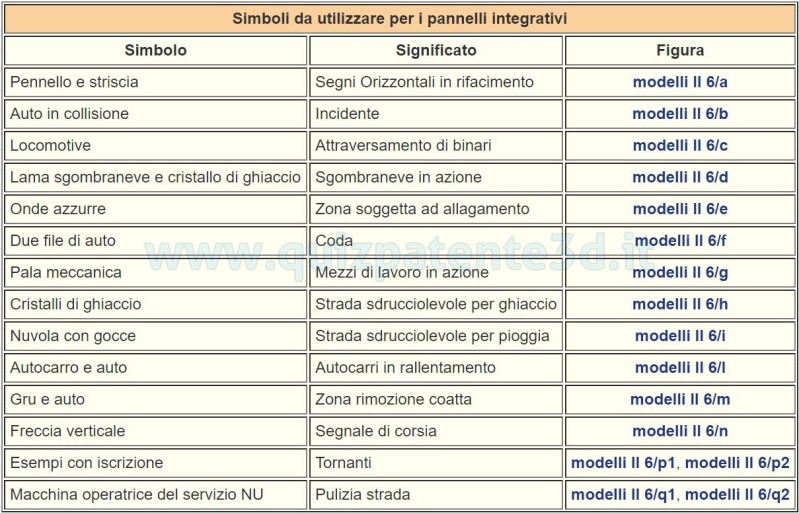 10. I simboli da utilizzare per i pannelli integrativi ((modello II.6)), salvo altri che potranno essere autorizzati dal Ministero dei lavori pubblici, sono: