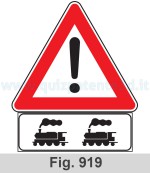 Posto sotto il segnale ALTRI PERICOLI (fig. 919), indica la presenza di un attraversamento di binari ferroviari di manovra o di raccordo in prossimità di scali merci, invitando a moderare la velocità.