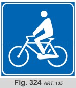 Indica un percorso (o una pista, una corsia, un itinerario) riservato alle biciclette e quindi percorribile esclusivamente dai ciclisti (e non dai pedoni o ciclomotori). Non consente il transito agli altri tipi di veicoli (autovetture, motocicli, ecc.).